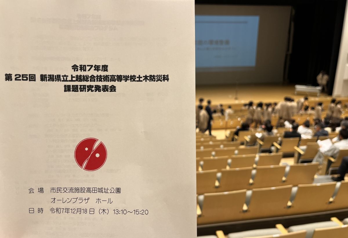 先日、上越総合技術高等学校 土木防災科の課題研究発表会に出席させて頂きました。