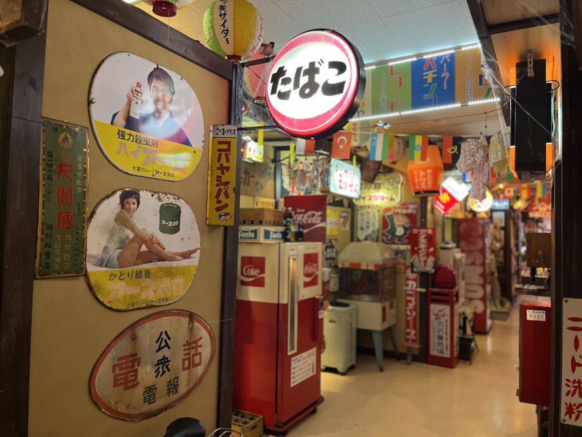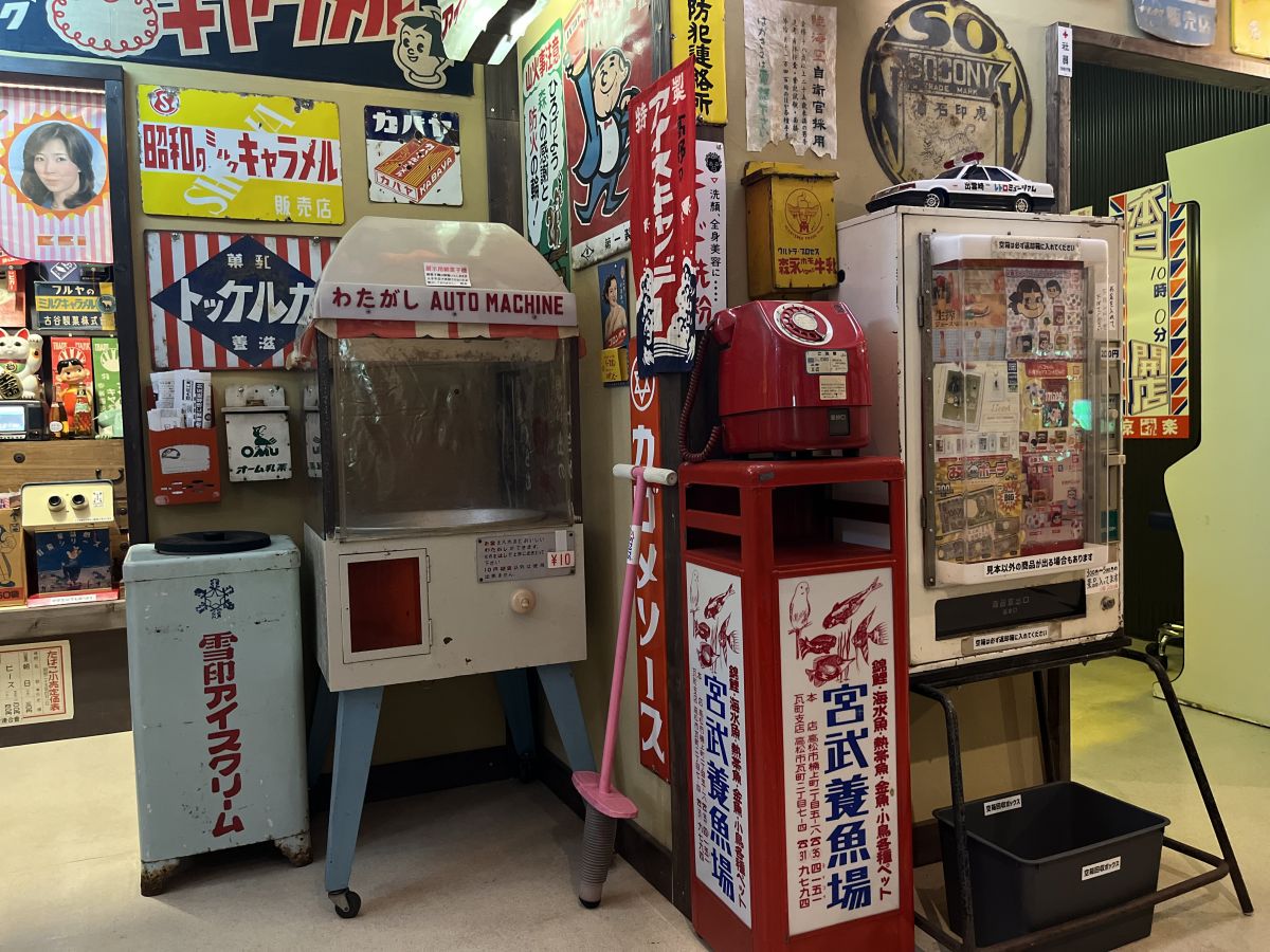 10円の駄菓子や昭和レトロなハンバーガーの自動販売機などがあり昭和の時代にタイムスリップ出来ますよ。